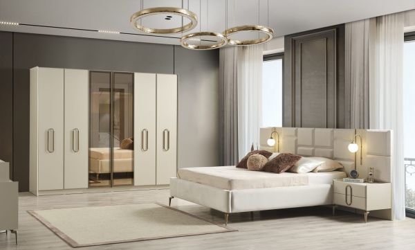 Gardolap, karyola ve başlık, şifonyer ve ayna, 2 adet komodin ve komodin arka panoları takım fiyatına dahildir