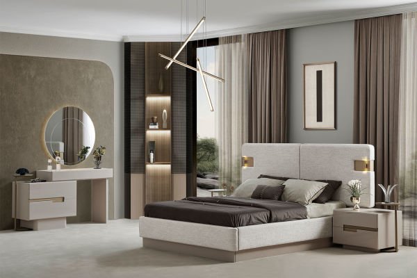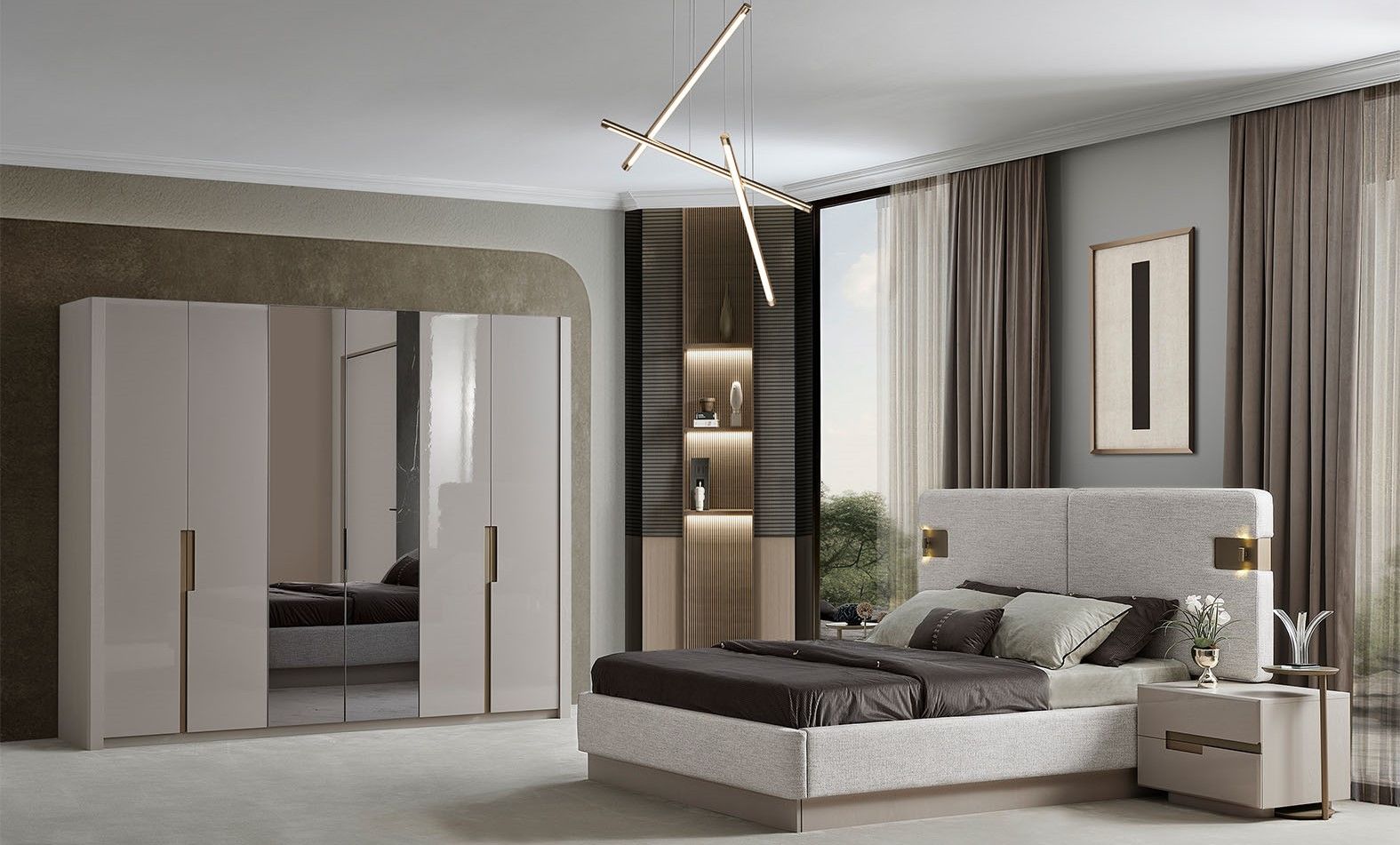 Gardolap, karyola ve başlık, şifonyer ve ayna, 2 adet komodin ve komodin arka panoları takım fiyatına dahildir